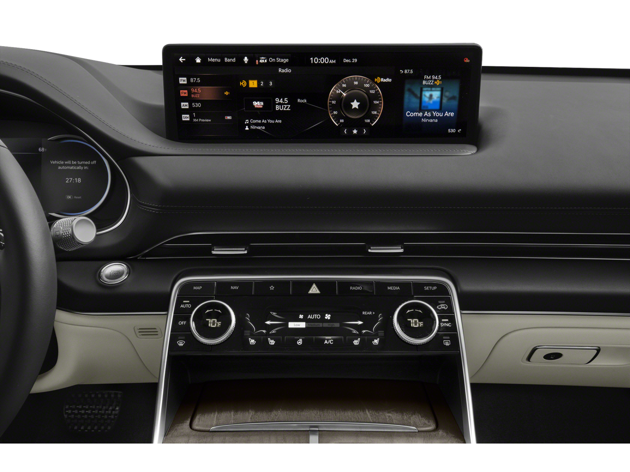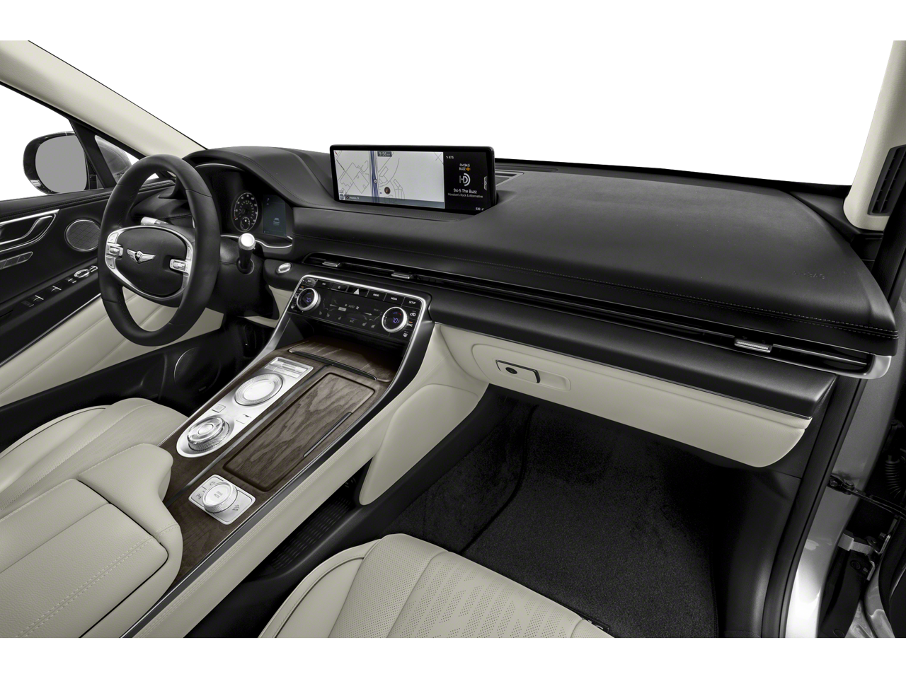 - Radio: AM/FM/SiriusXM/HD Premium Audio System -inc: internal amplifier, integrated navigation, 14.5" HD LCD screen, Apple Carplay and Android Auto, Bluetooth® hands-free phone system w/audio streaming, steering wheel controls, 2 front and 2 rear USB ports, 2 12v power outlets, front wireless device charger and Genesis Connected Services